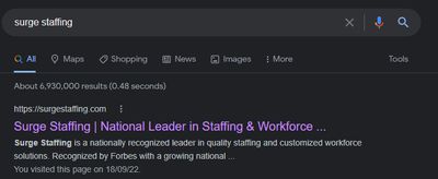 Does Google recognize the website for surge staffing?