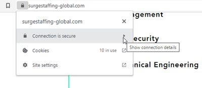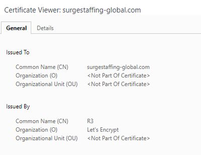 Next up is the security certificate. This can be accessed by click in the lock icon in the web browser. The site appears to be protected by Lets Encrypt — a popular free security certificate service. No red flags here but also no proof that the site is legitimate.