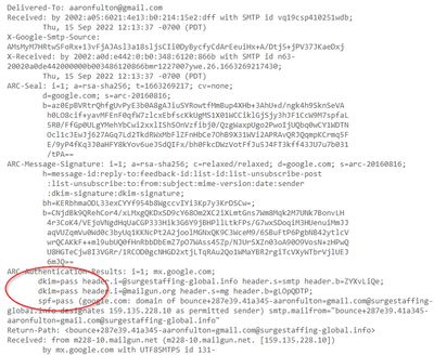 I could have also inspected the email headers for the DKIM and SPF checks, but I assumed that there were both going to be a PASS or else the email would not have ended up in my inbox. Sure enough, both a pass.