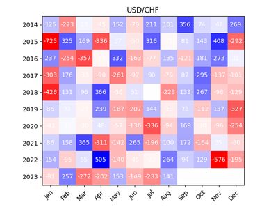 The USD is strongest against the Franc in June and December and weakest in September.