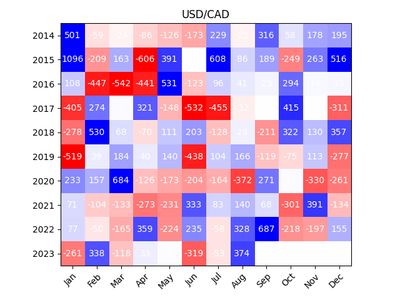 There does not appear to be any clear monthly trends for the USD/CAD.